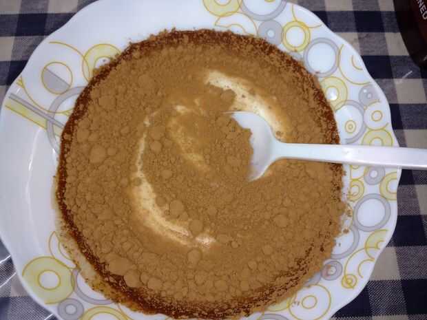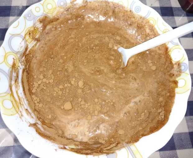 Toma un tiempo para el cacao en polvo mezclar muy bien con el yogur. Keepmixing bien. Una vez incorporada add.in el azúcar moreno y mezcla bien.