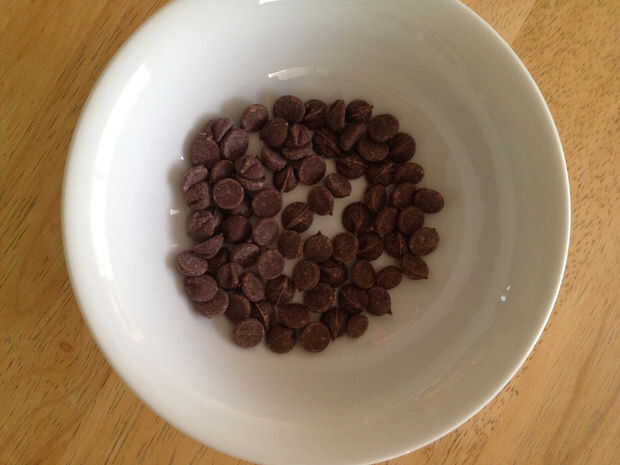 Chips de chocolate tanto como sea necesario (dependiendo de su taza/tazón de fuente/bandeja/molde)