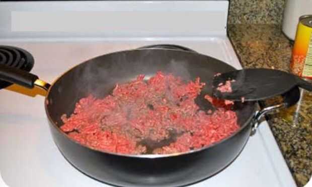 En una sartén grande dorar la carne molida. Una vez dorado añadir al queso en la olla