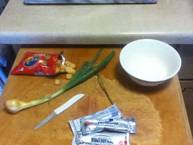 Dip de queso crema de cebolla y de verde (1 / 4 paso)