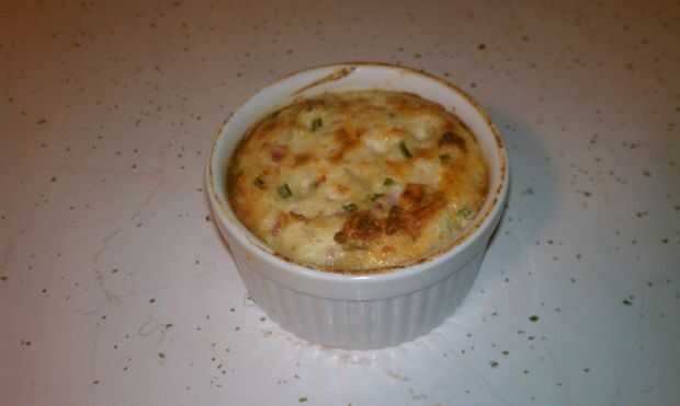 Una vez que tienes una buena mezcla, cuchara algunos hacia fuera en un recipiente adecuado para horno, como una mini olla pop o soufle plato como en la foto. Son acerca de dinero en el supermercado o al muelle uno. Coge un puñado de ellos, no te arrepentirás.