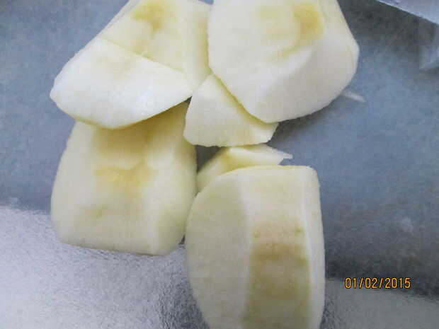 Pelar, núcleo y trocee de 4 a 5 manzanas de tamaño mediano (esto debe hacer aproximadamente 5 tazas de manzanas picadas).