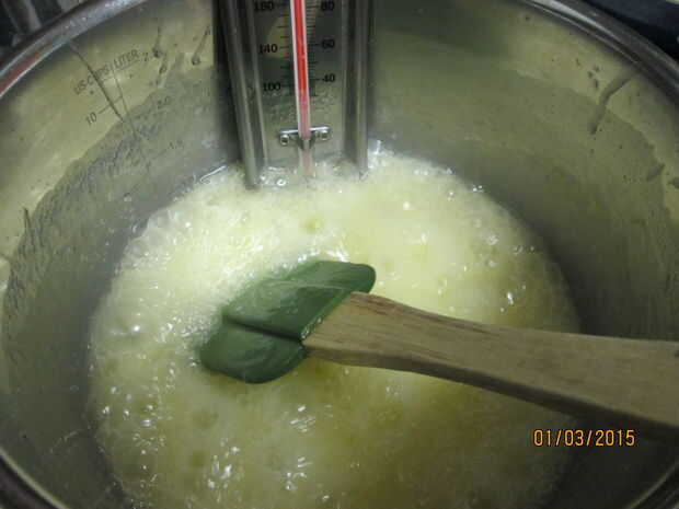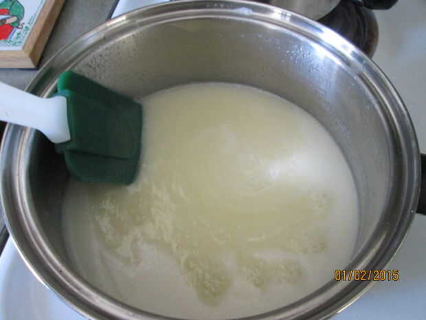 Llevar la salsa a mantener de ebullición (generalmente para el jarabe de suero de leche que dejas aquí) cocinar revolviendo de vez en cuando para evitar que se quema. El objetivo es reducir la cantidad de agua en la salsa para que sea gruesa. Cocinero de 23 (minutos +/-) o hasta que llegue a 220° F. Debe reducirse a la mitad.