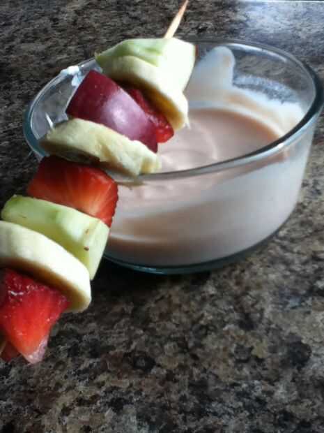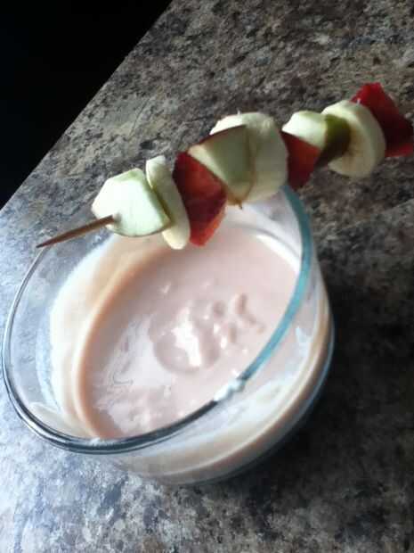 Éste no podría ser más fácil o más sabrosa. Es un dip picante y dulce hecha de queso crema y la pelusa de la melcocha, que mi novio insiste en que es buena en todo tipo de fruta. (Y yo incluso soy pasteles de pensamiento... tostadas... y todo) Y nomb