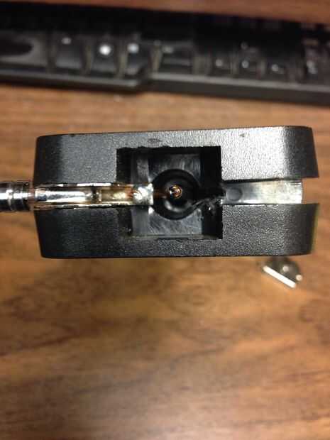Lo primero que hice fue desmontar la antena para ver si necesita limpieza. Las arandelas de cobre secundarios estaban un poco sucias pero algún limpiador del carburador fija. Dejé el conductor central de la PL-259 a un lado de las orejas de conejo. Si usted está construyendo una de ellas que tendrás que quitar el cable original y perfore un agujero abajo del centro del poste de montaje de los cables. Ayuda si usted cortar primero la bola al final. A partir del taladro será más fácil sobre una superficie plana. Tienes que soldar los cables a el PL-259 antes de atornillar en la base de la antena. Una vez que su rosca en el cuello no resbalará lo suficiente como para llegar al lado de anillo de soldadura. Si usted a enroscar en mientras que su todavía caliente de soldar el cable de tierra irá un poco más fácil. No te preocupes la ranura para el cable utilizado para ir a través. Lo usaremos para los cables del balun.