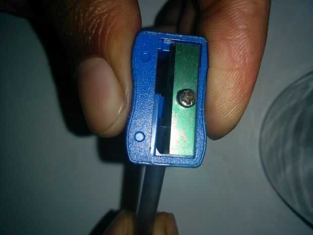 Hold recarga oblicua tal que del lado del tubo hacia el sacapuntas debe estar hacia arriba
