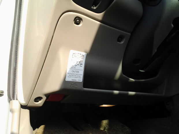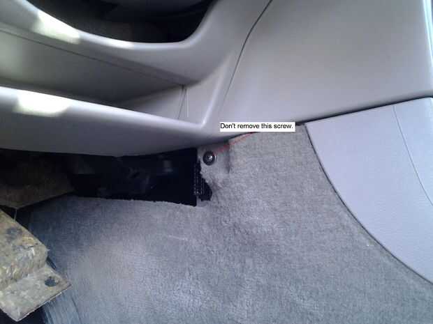 Debajo de este panel, hacia abajo por los pedales, es un panel de fibra de 2 clips como se muestra en la foto - les apriete y tire hacia abajo, entonces desconecte los 2 cables a la luz de cortesía en el panel.