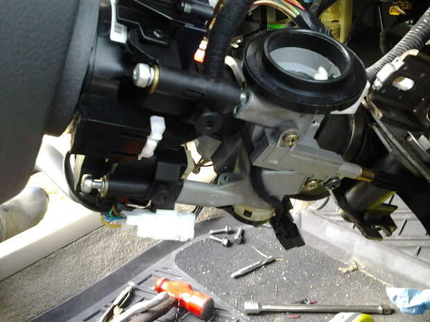 Si usted ya no lo hice, quitar los 3 tornillos que sostienen los controles del limpiador y señal de la vuelta a la cerradura.