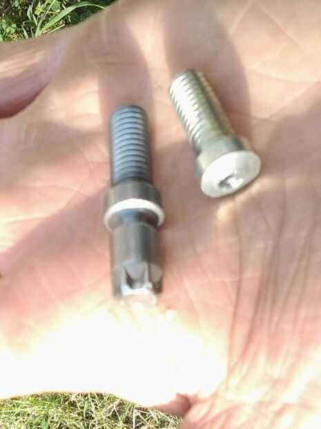 Ver la foto del perno de nuevo a la izquierda y el perno viejo (que me he perforado y quitado)