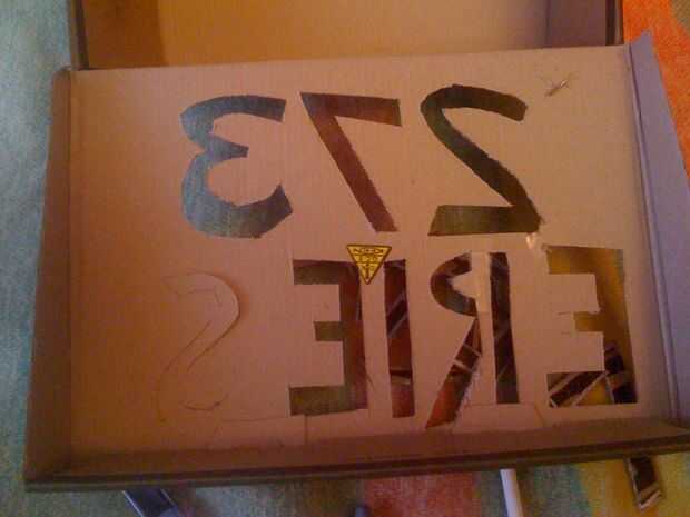 Corte la dirección utilizando una navaja o un cuchillo Xacto. Tuve algunos problemas limpiamente a cortar el cartón corrugado de la caja. Si quería más elegante tipo utilizaría una caja de zapatos del tablero de la prensa en su lugar.
