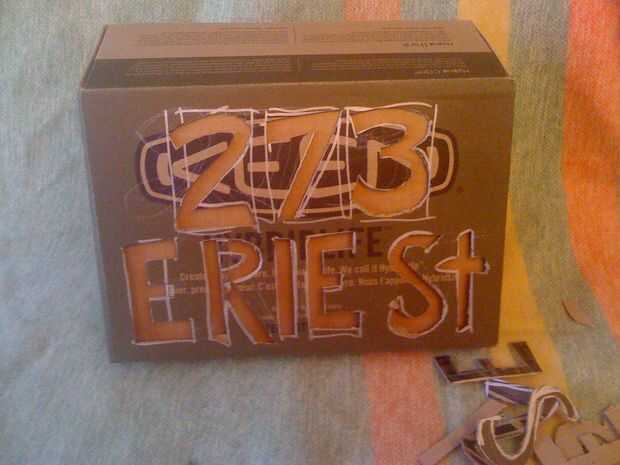 Corté un pedazo de cartón para sujetar debajo de la tapa para la estabilidad luego de cortar a través de la E a la 2 y que juntos la cinta.