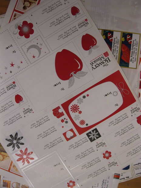 Primero fue a través de las hojas de etiquetas de direcciones y trató de separarlos en montones de colores similares.