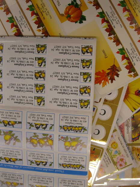A través de algún juicio y un montón de errores, finalmente llegamos a un camino factible para hacer unas pegatinas de vinilo-esque. Usando una combinación de etiquetas de envío y laminado de vinilo transparente alcanzamos lo que creemos que es el mé