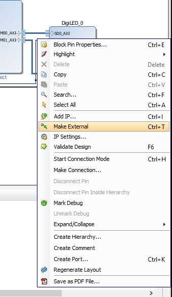 7. Haga clic derecho en el "led_out" y haga clic en "hacer externos"