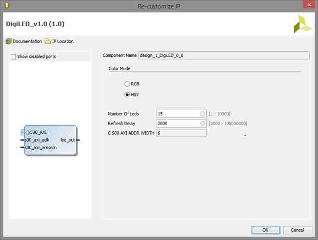 11. Abrir la ventana personalizada DigiLED para comprobar que Vivado salvado la configuración correctamente.