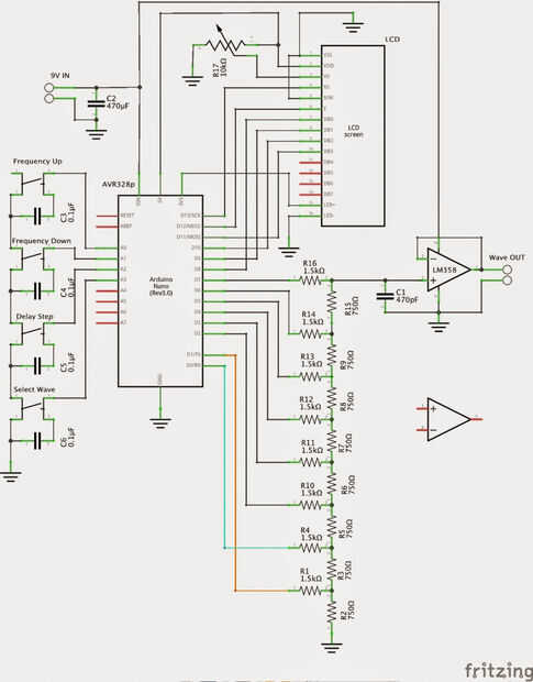 Por otro lado esto podría ser un proyecto interesante - no muy útil, pero al menos manualmente podemos construir DDS y conseguir el buen entendimiento de su funcionalidad. La idea básica de tal sintetizador es crear un lazo de software donde cada iteración salida de punto único de onda particular. Mayor cantidad de puntos dentro de periodo único aumenta la resolución y reduce la frecuencia - debido a la potencia de procesamiento limitada.