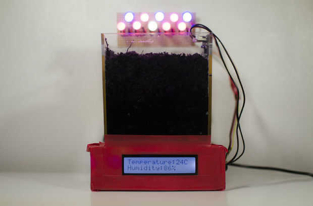 El sistema en basic toma una lectura de un sensor de agua y sensor de temperatura. Estas lecturas se muestran en la pantalla de LCD montada base. Si la humedad del suelo es crítica (se puede ajustar este umbral), la pantalla rojo y activar una bomba impulsada por la red y un relé. El arduino esto trata bombeo ciclo 5 veces por defecto antes de preguntar al usuario para llenar el depósito de agua en la parte posterior. Usé una bomba sumergible pequeña simplemente porque tenía él que miente alrededor de un proyecto anterior, se puede usar cualquier tipo. Pequeñas bombas peristálticas de DC pueden ser preferibles porque las partes internas no entran realmente en contacto con el agua.