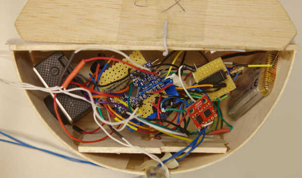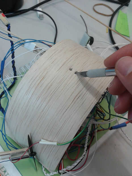 Sólo puede pegar la espiga al caso con el Epoxy. Asegúrese de que los motores de cara al frente, así que son los más fuertes. Para el motor de arriba/abajo, hacer dos pequeños agujeros en la parte inferior de la caja, conecte el motor a dos taquetes y ponerlos a través de los agujeros. Añadiendo otro plato y poner el que así lo hace mucho más estable (véase el cuadro con la electrónica).