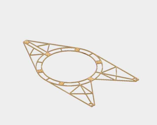 El marco del centro consiste en dos anillos concéntricos con puntos en incrementos de 60 grados a lo largo del borde de montaje. El balón se tiró en el centro del anillo y fijado a la estructura tirando de la punta del cuello a través de la pieza de adaptador de góndola. Tres tubos de fibra de carbono se extienden hacia abajo hacia el adaptador. La fuerza del balón tira la góndola y los tubos esto distribuyen uniformemente hacia el borde del marco.