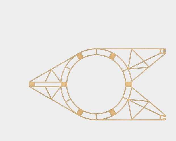 El esqueleto mecánico del dirigible consiste en un gran marco de madera plana que es laser-corte de madera contrachapada gruesa de 1/8" y consta de cuatro secciones principales: la cabeza, estructura de centro, góndola y cola.
