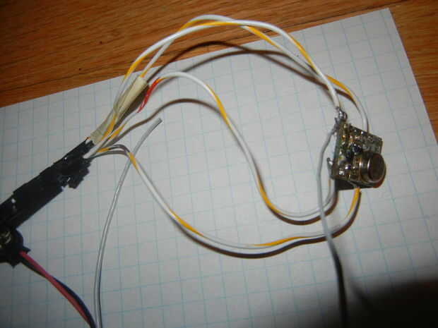Esta foto es del módulo transmisor, soldado a un conector que utilizo para conectar al controlador. Las radios, una vez que llegue para trabajar, son muy sencillas de utilizar: dar los + 5V y GND, y entonces cada vez que tire el pin de datos del transmisor alto, el pin de datos del receptor también va a + 5V. Esta es una manera muy intuitiva de radios operativas, y con algunos ajuste fino de sincronización puede utilizar estas radios para enviar bytes una vía rápida y confiablemente. Hay un montón de pares de radio barato se puede comprar que funcionan exactamente como esta, y con ellos usted puede utilizar la misma configuración exacta que hice. Si desea derrochar, hay cosas como el Xbee que todos de la sincronización desordenada temas para usted--da datos y escupe en el otro lado. Sin embargo, muy caro.