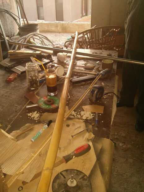 Para la cola, utilicé algunas Cañas y algunas cuerdas o alambre, para hacer un círculo, en la parte inferior del cohete.