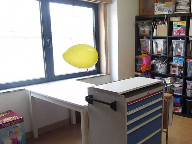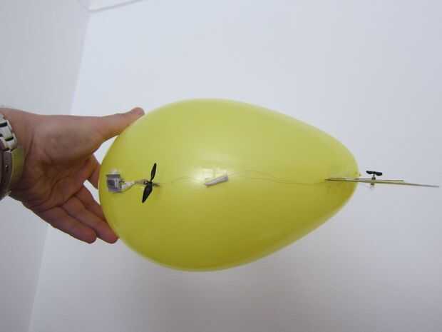 Como de costumbre para dirigibles RC, la flotabilidad es recortada de tal manera que el dirigible se hunde lentamente cuando apagado.