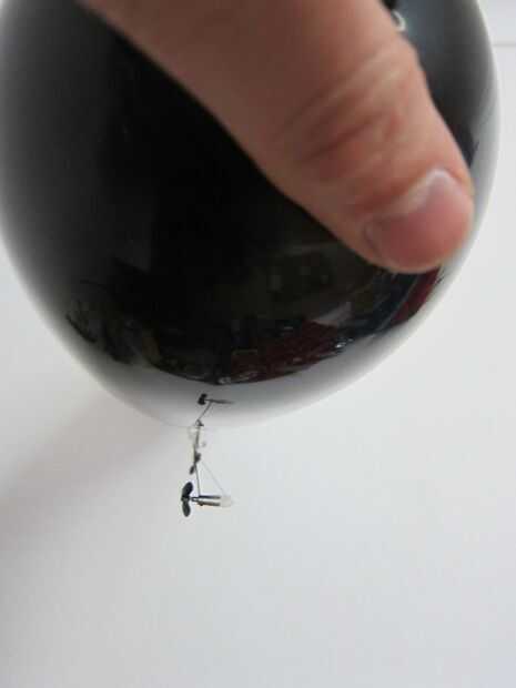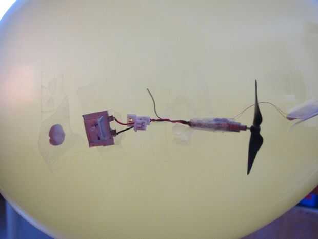 La batería se pone delante del receptor. Masilla es añadida para recortar la flotabilidad y el dirigible mantener nivel. En realidad, lo mejor es colocar las piezas de tal manera que toda la masilla de lastre está en el centro. Esta manera, quitar la masilla cuando el globo pierde elevación y flotabilidad debe ser corregido, el dirigible sigue siendo el nivel. Esto demostró para ser difícil a veces, pero menos que perfectamente nivelada dirigible vuela demasiado.