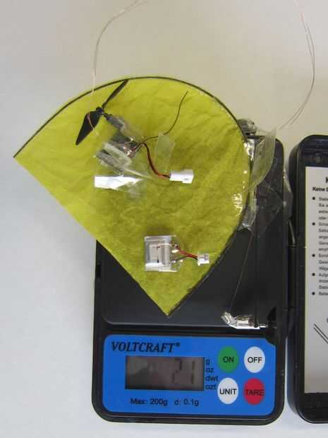 Dirigible no rígido de mi Pico es todavía mucho más pesado que los planos micro RC más ligeros debajo de 0, 5g. Pero luego en vuelo tripulado, los dirigibles más pequeños tienden a ser más grande que los aeroplanos más pequeños también. Se podría pensar en atar con correa a un plano micro 0.5g en un globo, pero esto no sólo sería una solución muy costosa, las superficies de control sería demasiado pequeñas para el gran volumen y baja velocidad. Aún así, mucha inspiración puede venir de estos micro planos para construir pequeños dirigibles.