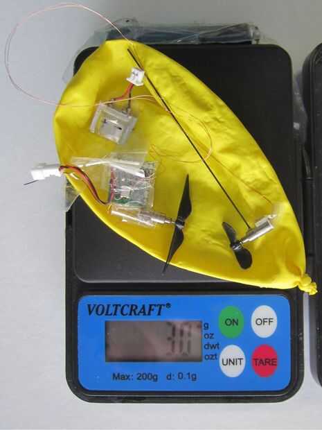 Como se menciona en este hilo, las demandas sobre los aeroplanos ligeros, helicópteros y tal están bien documentados en la red, pero poco se puede encontrar en dirigibles. La más pequeña conocida para mí es esta maravillosa construcción que se describe en este hilo. 4,6 g masa total también es incluso más ligero que el experimento de Plantraco describió este hilo, con una góndola de 3,8 g y un globo de látex calculo para agregar al menos 1,2 g.