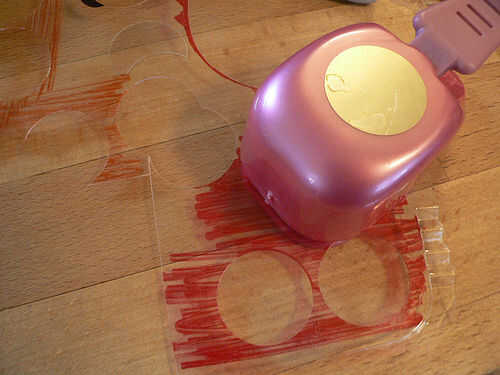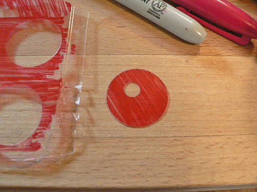 Entonces, usando la perforadora punch un círculo más pequeño cerca del borde del disco (ver foto)