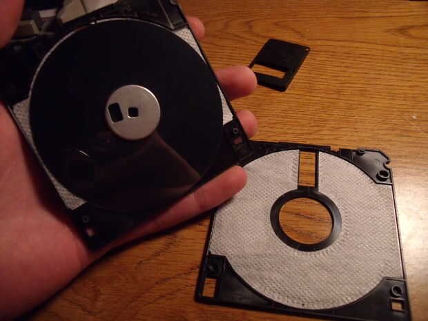 desmontar el disquete! No es momento para ser un wussy! pues sí, ten cuidado, no ripea el disco. Sólo rompen la cubierta en los lados y esquinas y sacar el disco.