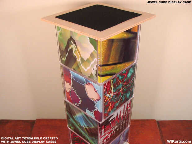 - Cuando se apilan los cubos pueden colocarse para que los bordes de cada cubo se ejecutan en la misma dirección, o alternan como una cremallera (como se muestra). Si usted está haciendo un tótem se seguro para decidir que prefiere antes de insertar su obra de arte/fotos/etc. porque con el estilo de cremallera deberás insertar el trabajo mostrado en una dirección opuesta en cada otro cubo. Si se utiliza el espacio de título de borde que tenga para girar el texto y colocarlo en el lado opuesto de su trabajo aparece así.
