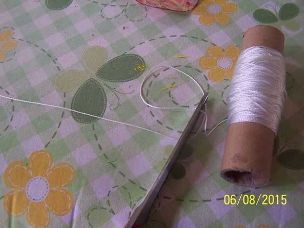 Cortar una longitud de cadena y el hilo a través de un agujero en la cera.