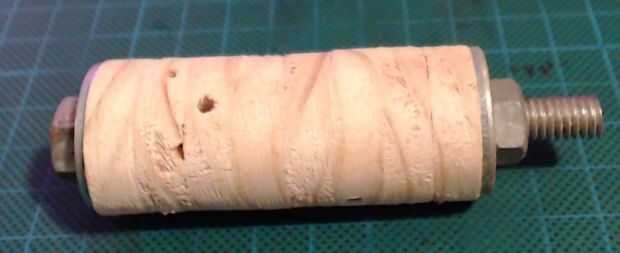 Empecé por insertar una longitud del pasador en el orificio central y, utilizando los cubos que había hecho, conseguir los discos a la espiga.