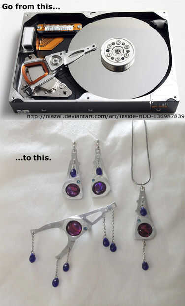 La primera vez destruyó un disco duro muerto y consiguió una mirada cercana en todos los pedacitos de brillantes limpios dentro, recuerdo uno de mis primeros pensamientos fue: "Apuesto que este material podría transformarse en algunas joyas cool".