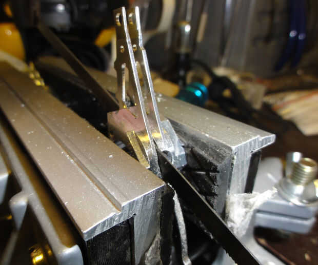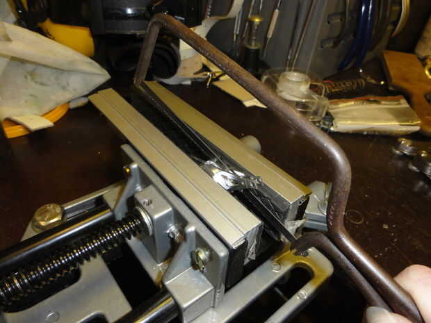 Una Dremel u otra herramienta rotatoria de preferencia con un accesorio de disco de corte se podría utilizar para este paso también, pero encuentro una pequeña sierra de mano para ser mejor. Usar protección para los oídos para esta parte, incluso si una sierra de mano no es muy ruidosa, que el ruido es todavía muy reja. Polvo máscara bien demasiado, especialmente--definitivamente--si utiliza algunos tipos de herramientas eléctricas para cortar el aluminio. Es un metal ligero y la macropartícula va aire muy fácilmente.