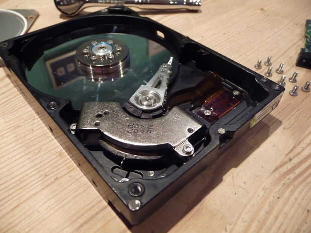 Por desgracia, incluso después de que lucha el imán superior libre, usted encontrará que hay un tornillo final para tomar hacia fuera, al otro lado de la unidad. Pero todo lo que queda del otro lado es el PCB!", dice. No es así, dice. Que PCB esconde un tornillo, que sujeta al otro lado de la cabeza de lectura/escritura hacia abajo. Corte la parte de atrás del disco duro en cualquier manera agrada a usted (es atornillado y pegado) y quite el tornillo.