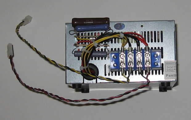 Probablemente actualizaste equipo en el pasado con una fuente de energía más grande y su sentados en su garaje para polvo.  Usted puede utilizar esa fuente de alimentación (si su trabajo aún) para este proyecto. Empezar por localizar el + 5 / + 12 conectores que se conectan normalmente en el disco duro.  Cortar los conectores y pase los cables a un bloque de terminales para facilitar el cableado. Puede obtener algunos nuevos conectores en un lugar como la electrónica de Fry para conectar las unidades. El negro es común (la conexión negativa), el rojo es + 5 y amarillo es + 12. A continuación he añadido un segundo conjunto de conectores (hacia la izquierda) así que puedo quitar la fuente de alimentación del proyecto. Usted también necesitará una carga mínima a través de la alimentación para conseguirlo para encender.  Usé un 30 ohmios/20w y resistencias de alimentación de 50 ohmios/20w a través de la salida de 12 voltios y un ohm/10w 10 a través de la salida de 5 voltios. Una bombilla de luz de cola auto 12v y 6v también funciona como una carga