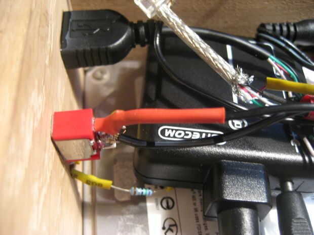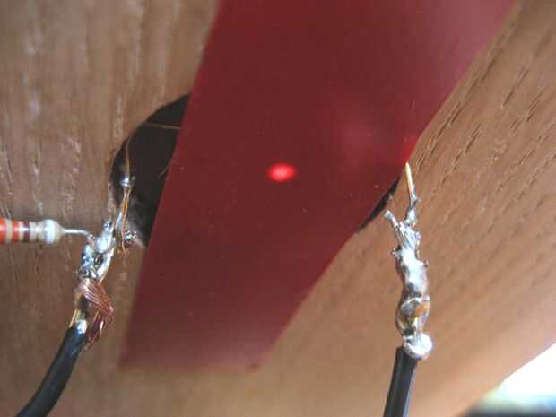 El LED blanco en la parte inferior de la caja del pegamento y cubrirla con cinta aislante.