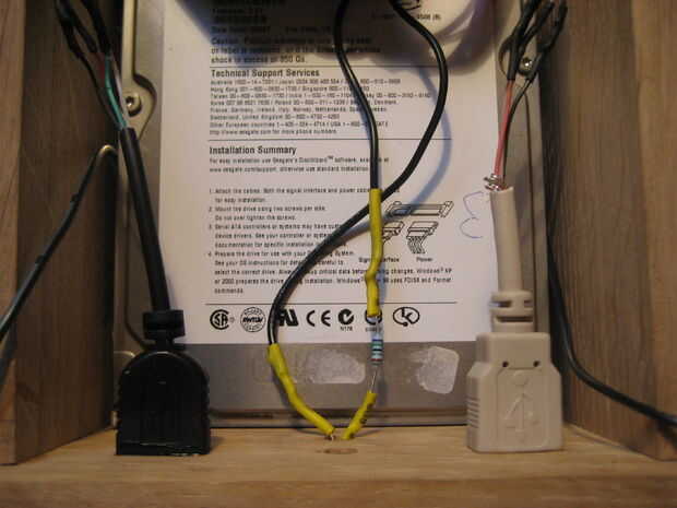 Conectarse a la unidad de disco duro Serial ata a USB adaptador de. Cubrir el fondo del hub USB con cinta aislante y pegamento en su lugar al lado de la caja.