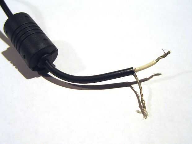 Cortar la parte superior de la Serial ata a USB adaptador de corriente (deje un trozo de 10 cm de cable en él), tira el cable: el cable exterior es el negativo, el interior alambre positivo.