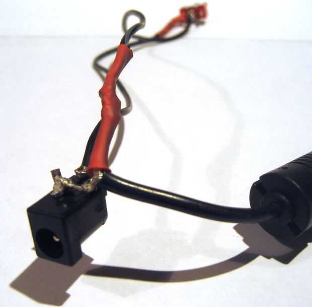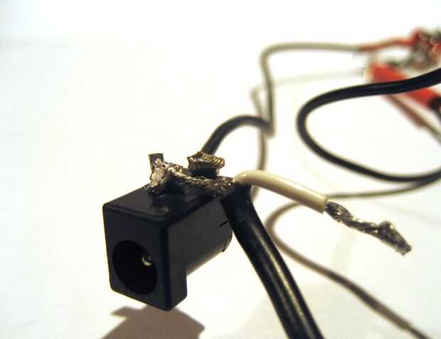 Soldar el cable negativo en el lado negativo de la toma de corriente.