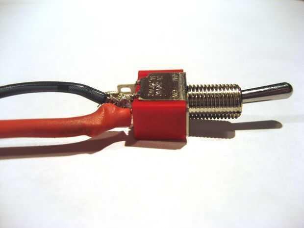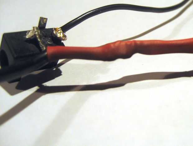 Soldar un cable de 19 cm en el lado positivo de la toma de corriente y soldar el otro extremo al interruptor.