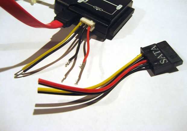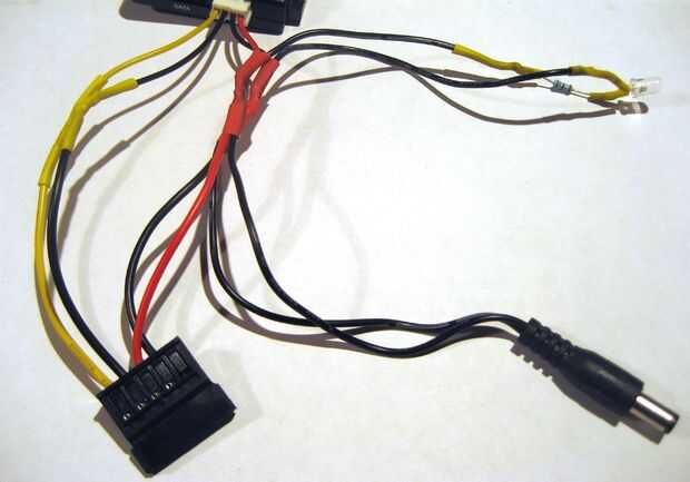 Cortar el cable rojo y un cable negro del conector de alimentación Serial ata y despojarlos. El cable amarillo es + 12 voltios, el rojo es + 5 voltios, los cables negros son tierra (use un multímetro para verificar).