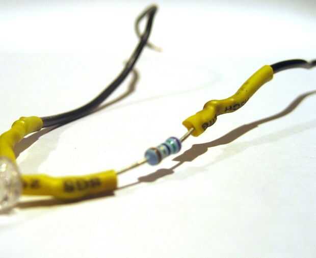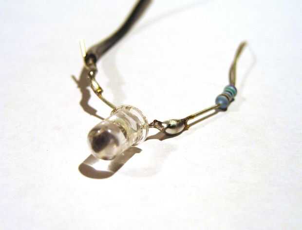 Solde un resistor de 75 ohmios en el lado positivo del LED azul.