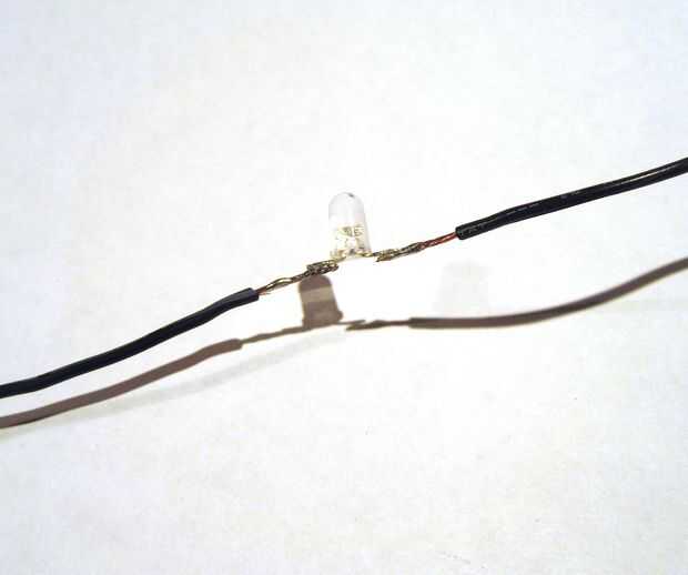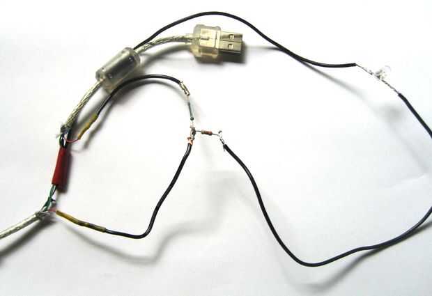 Soldar un cable en el lado negativo del LED blanco y conectar a los extremos negativos del cable USB.