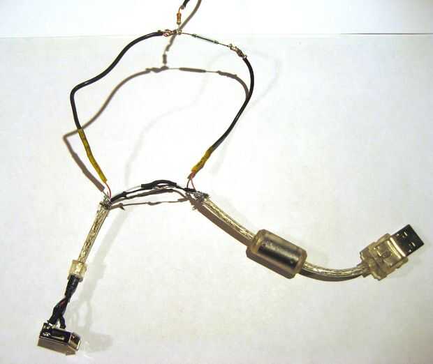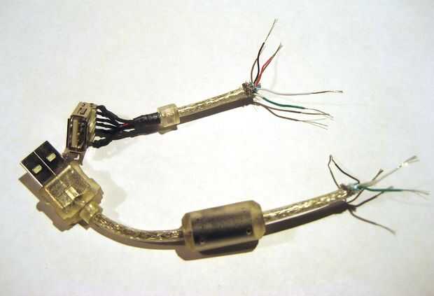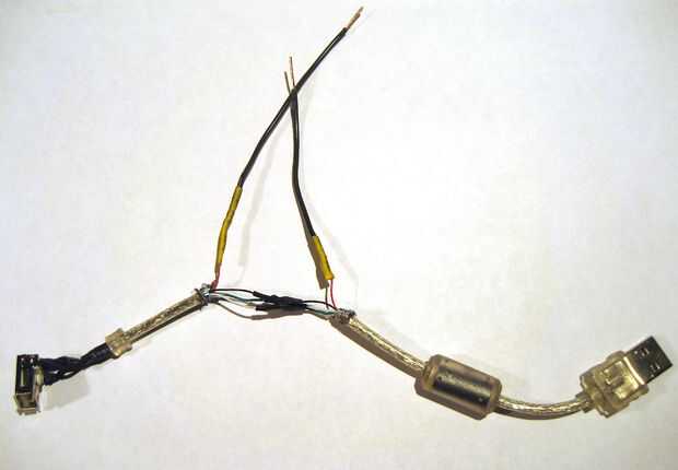 Acortar un cable USB. Utilice un multímetro para decidir cual cable es cual.