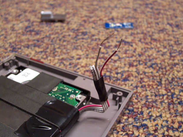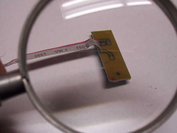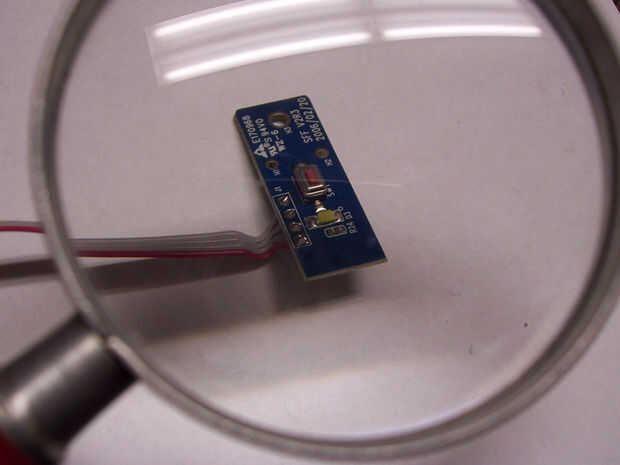 Me di cuenta de que los cables fueron a la pequeña de la Junta y los que fueron al botón. Nunca uso el botón, así que decidí lo nix y centrarse en los LEDs. Obviamente, el cable rojo llevaba la corriente positiva, y junto a ella fue la tierra para el LED, por lo que fue los que separada del resto.