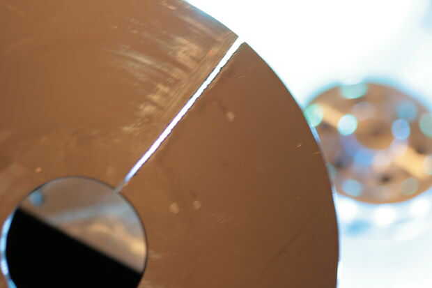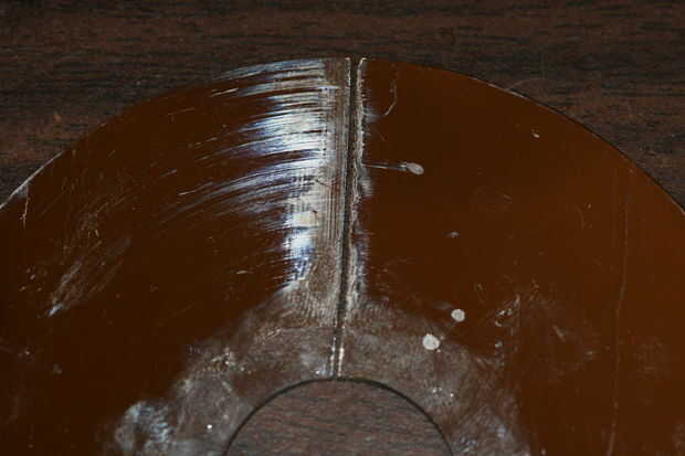 Para poder cortar el plato, usted necesitará una sierra de dientes finos o una dremel con un disco de corte. Asegúrese de usar guantes y gafas protectoras, como puede romper el plato. No importa donde corte la ranura, pero asegúrese de que esté tan perpendicular a la tangente del punto que escogió. Hacer el corte como rectas y estrechas como sea posible. Comience el corte desde el exterior del plato, viajando hacia el interior. Usted puede cortar a través de todo el camino, o dejar un poco de material para la estabilidad. Corté la mina a través de todo el camino sin problemas.